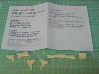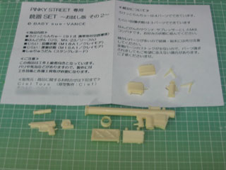 | 銃器セット〜お試し版 その2〜 内容は、ろけっとらんちゃー(91式)・はんどがん(US.Mk-23) じらい(設置状態)・じらい(運搬状態)・しゅりゅうだん の5点。 どっちもWFの時に完成予想の写真撮ってこなかったからどういう風に作りゃいいのかよく分からんorz とりあえず、バリ取り・洗浄したら黒鉄色で塗っちゃおうかな? …って思ってたけど、重武装セット作っちゃったからそのまま放置しそうな悪寒。 |