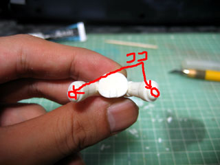 バリ取りついでに首の部分に3mmのピンバイス穴を開けておきます。 顔パーツを付け替えながらやれば深くなることはないかと。 |