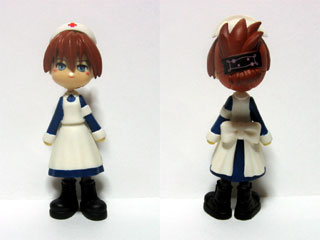 | クリア噴いて、組み立てたら完成。 服には筆ムラを少しでも目立たせなくするために、半透明噴いてからつや消し噴いてみました。 結果としては、あんまり目立たなくなったような気がする。 組み立てる時に分かったんだけど、足がちょっと入りにくい…。 塗膜のせいもあるかもしれないけど。 これから作る方は、ヤスリがけする時に仮組みして調整した方がいいかもしれません。 |