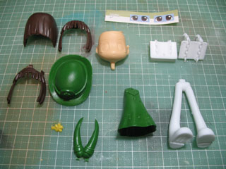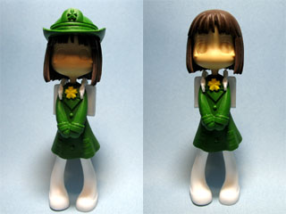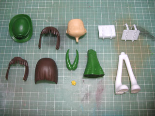 | 一応、色レシピ。 髪…レッドブラウン 服(緑)…ガンダムカラー グリーン3 服(白)…つや消しホワイト 足…つや消しホワイト 靴…ブルー(2)+インディブルー(1)+パープル(1) 帽子(緑)…ガンダムカラー グリーン3 帽子(青)…インディブルー けんぽー…キャラクターレッド 鎖…エナメル チタンシルバー 金色部分…エナメル チタンゴールド 口、ほっぺ…レドーム(1)+ピンク(1) ※カッコ内の数字は調色スプーンですくった回数。 |