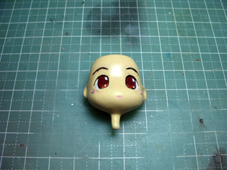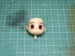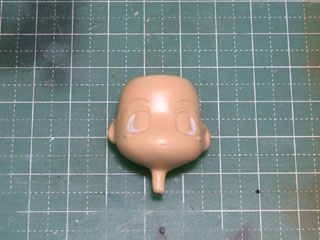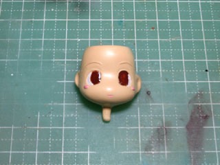 塗装の最後はアイペイント。 いつもは目の部分全体を白で塗ってから瞳を塗ってたけど、時間短縮のため今回は白目の部分だけを白で塗りました。 |