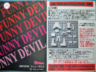 今回はFUNNY DEVILを組み立てて行きますよ。 原型はレトロナースと同じしえるさん。 ※WF2006冬、WF2006夏(再販)で頒布されたキットです。 |