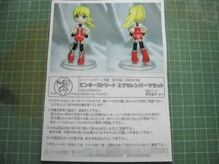| 最後に組み立てたら完成。 顔は見本のとおり「ココロ」にしてみました。 カラーレシピ 髪:キャラクターイエロー 服:ブライトレッド(ガイアカラー) 手袋:ブラック ストッキング:ブラック ブーツ:ブライトレッド(ガイアカラー) 首元:艦底色 |