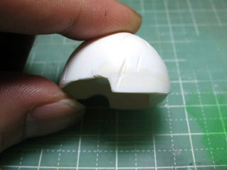 そのうちの1つの髪パーツ。 赤丸のトコにまだ段差が残ってたのでアルテコを盛って、またヤスリがけ。 |