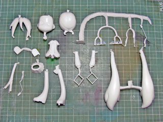 | パーツチェックをして問題なかったら大雑把にバリ取り。 マイクやアンテナパーツは折れそうだったのでそのまま。 だいたい出来たら離型剤を落とすために中性洗剤で洗います。 |