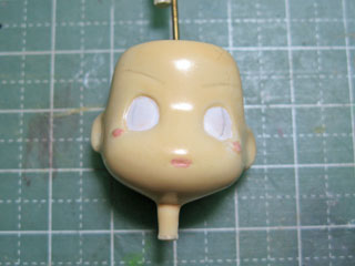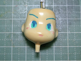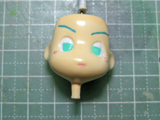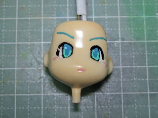 | 塗装の最後は、アイペイント。 まず鉛筆等で目の輪郭や眉毛を下書きしておきます。 今回はラッカー系塗料でやっていきます、失敗したら最初からやり直し…だ((((((;゚Д゚)))))) |