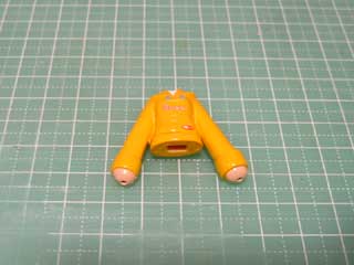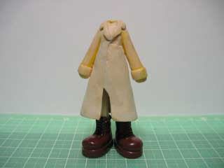 パテが固まったら、襟の形を切り出したり、ヤスリで削ったりしていきます。 何にもないとお医者さんの白衣みたいだw |