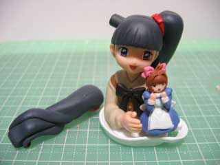 途中だけど付けてみた。 とまぁ、こんな感じに。 やってみて分かったんだけど、髪が重くて自立させづらいorz 後は塗装だけなんだけど、とりあえず今回はココまで。 |