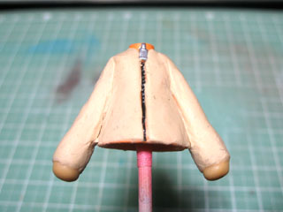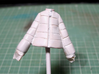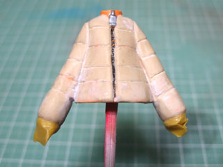 | チャックと襟の部分以外にパテを盛ります。 全体にパテを盛ってしまうので、塗装は落としていません。 |