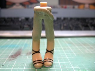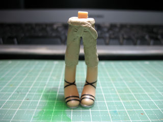 | 基本塗装が乾いたらベルトの塗装をします。 ベルトはガイアノーツのピュアホワイトで。 太もものトコにドライブラシで色落ち表現しようとしたんだけど、全然目立たねorz やりすぎてもと思って軽くしかやらなかったからなぁ。 |