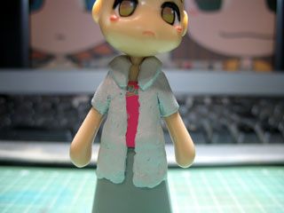 | 前もってボタンぽく塗装しておいた0.7mmのTピンを接着してつや消しクリアを噴いたら完成。 近くで見るの禁止って感じだけどw 色レシピ アロハ(黄色)…イエロー(3):ホワイト(2)くらい キャミ…カーキーグリーン |