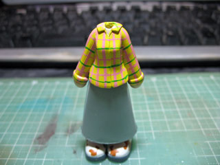 | 柄はチェックに。 はじめはエナメルでやってたんだけど、乾かしながらやっても次の場所に線を入れる時に触ると色が落ちていっちゃったのでラッカー系で一発勝負。 縦のラインはちゃんとマスキングしたんだけど、横はメンドくさがってやらなかったら案の定ガタガタにw |