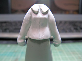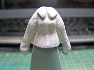 硬化したら襟の形に切り出したり、裾の長さを調整します。 パテとの継目が分からなくなるようにヤスリがけも。 |