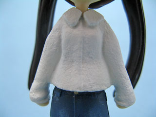 サフが乾いたら塗装へ。 色味の違う白系の色を3色重ねたけど全然分からないやorz 最後につや消しクリアを噴いたら完成。 もうちょっと毛足の長い感じにしたかったんだけど、このやり方だとダメなのかな? 襟元にあるような毛足の短いファーの表現は出来そうなのが分かったからヨシとしよう。 お腹のくびれたトコまでパテ盛った方がアウターっぽく見えたかな?これだと前から見たらブラウスっぽく見えちゃうし。 いろいろ反省はあるけどこれは次に活かしていけばいいやねw |