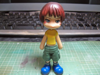 最後に腕を真鍮線で繋いで出来上がり。 キャラモノは資料があって作りやすいんだけど、似せようと思うと難しいよね。 それなりに見てもらえればってことで。 色レシピ 髪:オレンジ(2)+ウッドブラウン(1)+イエロー(1) 目:ニュートラルグレー 瞳:ブラック 上半身:ホワイトFS17875 リボン:レッド ツナギ:ホワイト(1)+レッドブラウン(1)+ピンク少量 靴:レッドブラウン ソール:灰色9号 ※カッコ内の数字は調色スプーンですくった回数。 |
