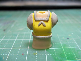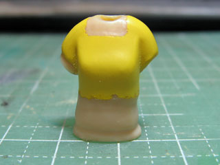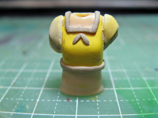 | 袖を絞ってるようにしたかったので、袖だけにポリパテを盛ります。 ポリパテが硬化したらまたヤスリがけ。 ひとまず上半身はこれまで。 |