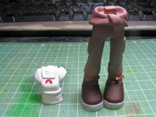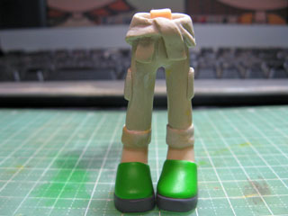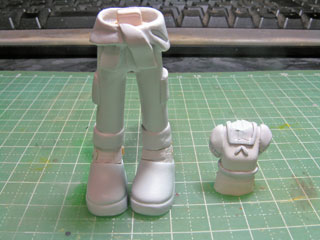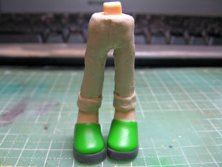 次は足にエポパテを盛ります。 硬化したら軽く形を整えるようにヤスリがけ。 |