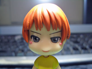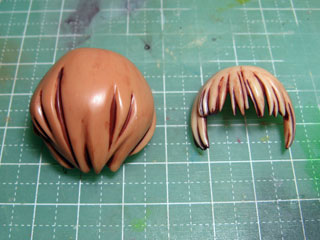 | 髪とアイペイントも完了。 髪は作り置きしてあったリペA髪っぽい色。 アイペイントは元の目の上から塗っただけのお手軽版で。 髪にはつや消しクリアを顔には半光沢クリアを噴きます。 |