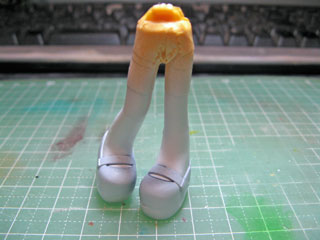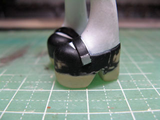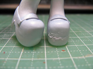 | ソールと踵の部分にパテを盛ります。 |ω・).。oO(YOSUKEの靴をイメージしたんだけど…) |