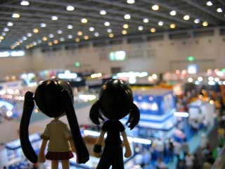 | 萌「せっかく見に来ましたのだから、記念撮影でも いたしましょう。 そろそろ約束のお時間ですから戻るとしましょう。」 ココロの待つ会場へと戻る萌。 この後はGSIクレオスのブースで、ピンキーストリートの 簡単改造講座(?)みたいなものに行くようです。 |