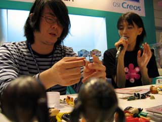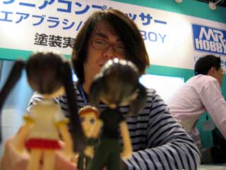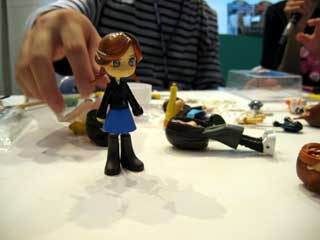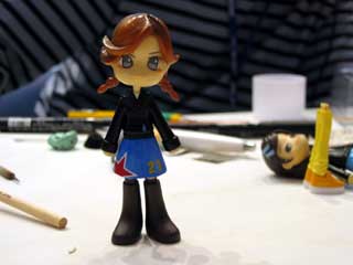 スカートにエポパテを盛って、セミロングスカートに。 その様子を真剣に見入る2人。 アシスタントには、オオゴシトモエさん。 |