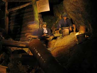 | たまえの望みも儚く、中は昔の採掘の様子を再現してるだけでした。 写真のように人形が当時の作業をしてました。 さ、この後2人は次は何処へ。 |