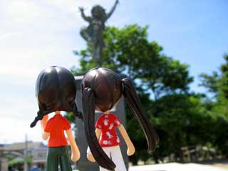フェリーの発着所へ戻る途中見覚えのある姿が。 た「おーい、ココロー。」 コ「あれ?なんでたまえがここにいるの!?」 た「いやー、何となく来てみたかったからさ、佐渡に。」 コ「どうやって来たのさ。」 た「それは教えられないなぁ。それよりせっかくだから ここで記念写真でもどうよ?」 |