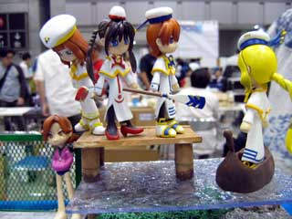 2004年8月29日(日) 先週のキャラホビに引き続きワンフェスにも行ってきました。 台風も近いづいてたため雨模様。 それにもめげずに始発に乗ってビックサイトへ。 前回同様ココロ(仮:以下コ)のレポートでお届けします。 コ「(´-`).。oO(あたしの名前はまだか!) 雨なのにもう並んでるよ。みんな気合入ってるなぁ。」 |
