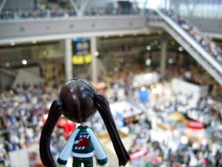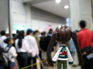| 2階のテラスっぽいのトコで一休み。 コ「疲れたー。荷物の整理もしとこ。 それにしても、下はすごい人ごみだねぇ。」 |
