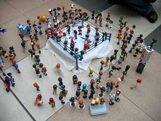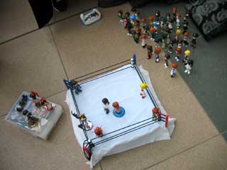見る見るうちに集まってきて、集まった数は170くらい? 去年の夏よりもかなり増えてます。 リング上では、ストリートファイトバトルロイヤル開催。 何か学園祭で見る学生プロレスのような図がw |