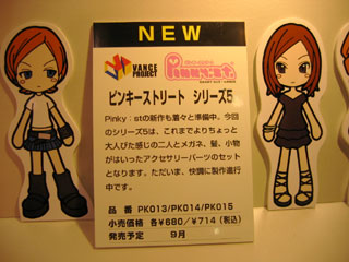 5期のポップ。 9月発売予定です。 着せ替えセットの内容は、髪・上半身(ブレザー)・メガネ・携帯電話らしい。 メガネは透明アクリルとか聞いた気が…。 PK006のメガネみたいに前髪に付いてるんではなくてはめ込み式になるのかな? |