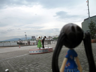 大津港に到着。 梛「着いたー。」 出航まで時間があったのでみんなでピンキー並べたり写真撮ったり。 |
