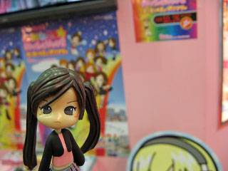 クレオスブースのピンキーの展示その1 こっちにはキラミュー、DVDとモンスターハンターのPOPが。 |