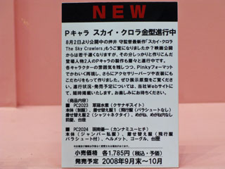 というわけで、今回のワンフェスレポはここまで。 撮影許可していただいたディーラーの皆様ありがとうございました。 何か不都合がございましたらお申し付けください。 |ω・)つ[ ワンフェス2008夏 ディーラーリスト ] |