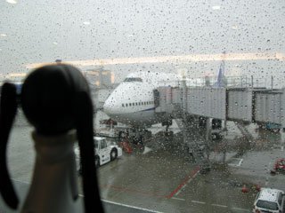 | 出発の日の東京はあいにくの雨。 傘を差しながら大きな荷物を持って歩くのは疲れたよw |