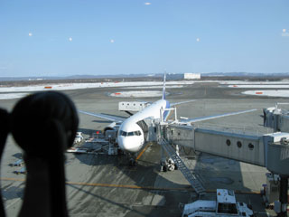 飛行機に乗って1時間半、新千歳空港に到着。 この日の北海道は暑かったよ。 てか、空港とは言え雪少なすぎ。 |