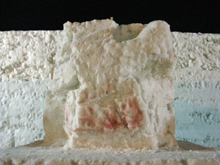 1日目の作業終了。 ブロックの状態からスプレーで輪郭を描いて大まかに荒削りを。 |