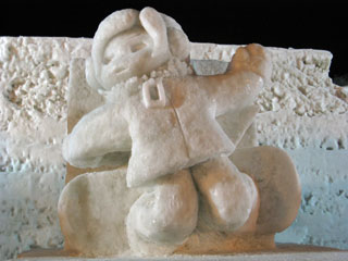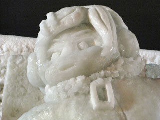 2日目終了。 作業の最後に頭部や服に雪を盛って整形。 |