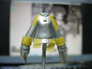下地が乾いたら、塗り分けるところにマスキングです。 後ろも忘れずに。 ここも手抜きで大体のトコしかマスキングしてません。 絶対マネしない方がいいですよーw |